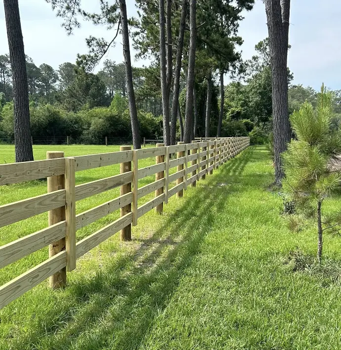 A simple, functional wood fence built with posts and horizontal rails. Common in rural areas for its affordable cost, rustic look, and easy repairs. Available upon request for residential use.